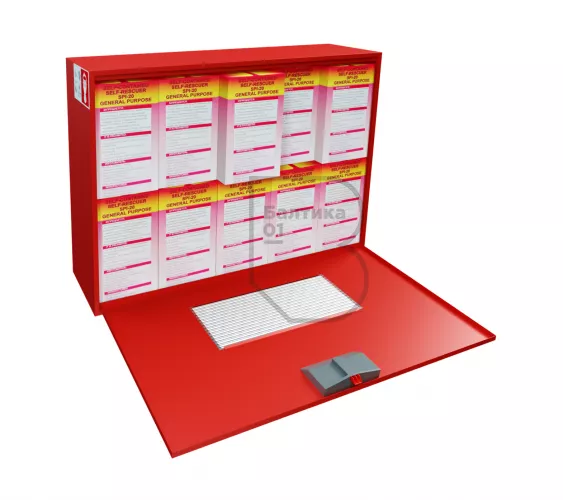 Контейнер для самоспасателей СПИ-10 предназначен для удобства размещения, хранения и оперативной выдачи десяти изолирующих самоспасателей СПИ-20.