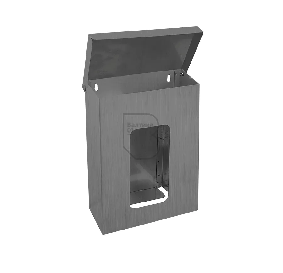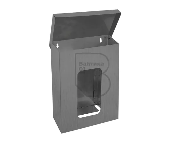 Диспенсер оснащен крышкой, которая защищает перчатки от загрязнений и обеспечивает дополнительную защиту от внешних воздействий. Держатель изготовлен из нержавеющей стали и надежно крепится к вертикальной поверхности.