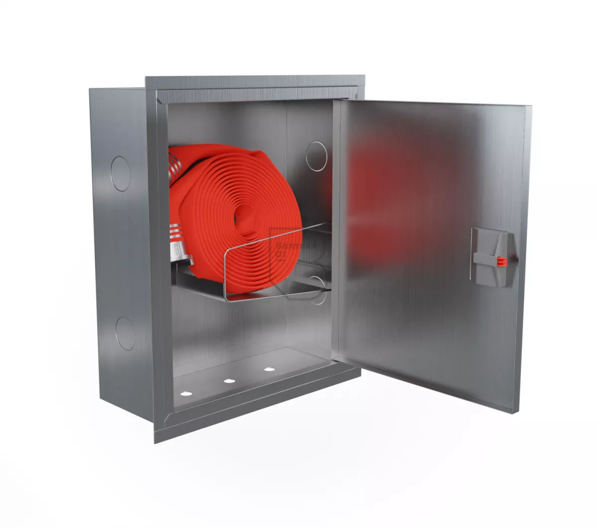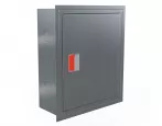 Дверца пожарного шкафа открывается на 160 градусов. Имеет запорное устройство в виде пластиковой защелки.