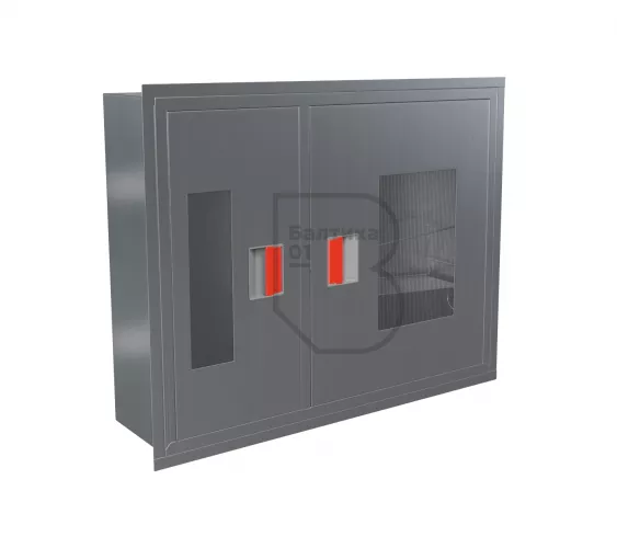 Дверцы пожарного шкафа открываются на 160 градусов. Имеют запорное устройство в виде пластиковой защелки.