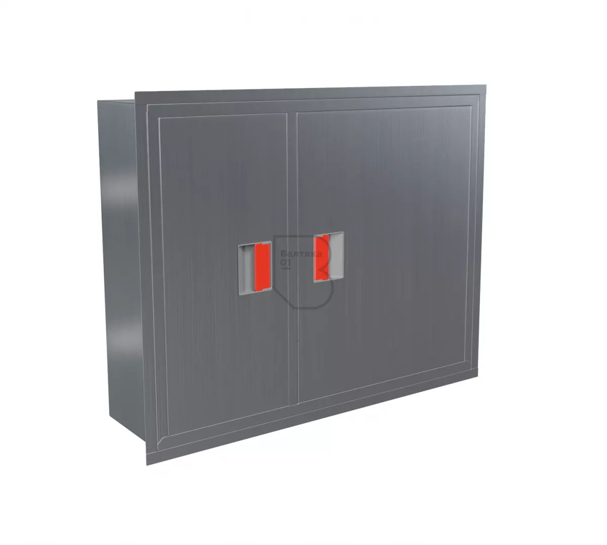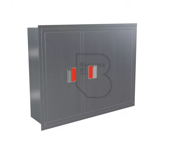 Дверцы пожарного шкафа открываются на 160 градусов. Имеют запорное устройство в виде пластиковой защелки.