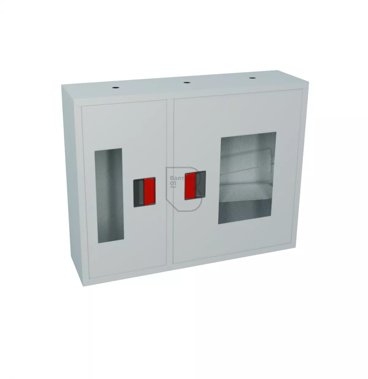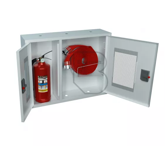 Дверцы пожарного шкафа открываются на 160 градусов. Имеют запорное устройство в виде пластиковой защелки. На каждой дверце имеется смотровое окно со вставкой из поликарбоната.