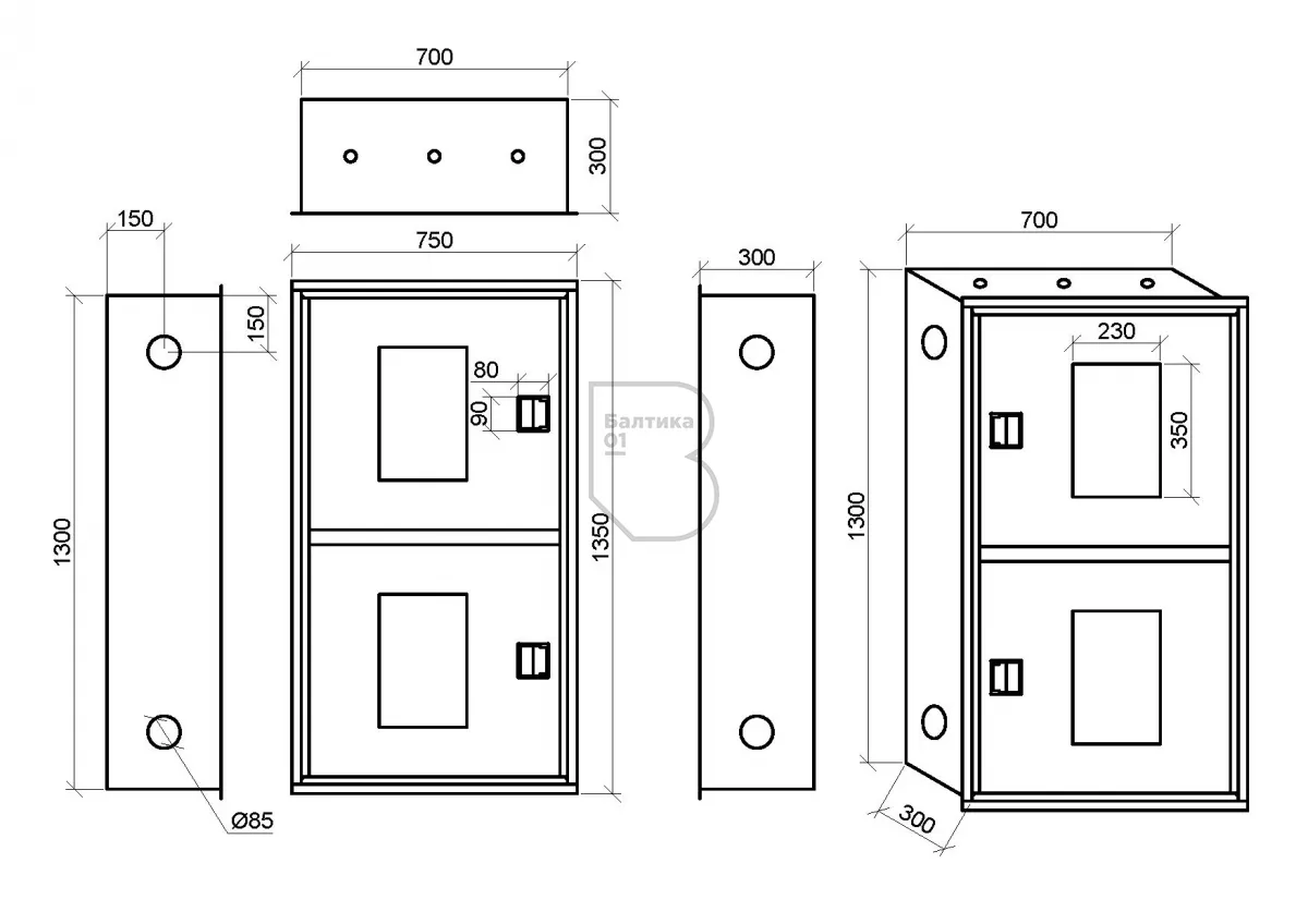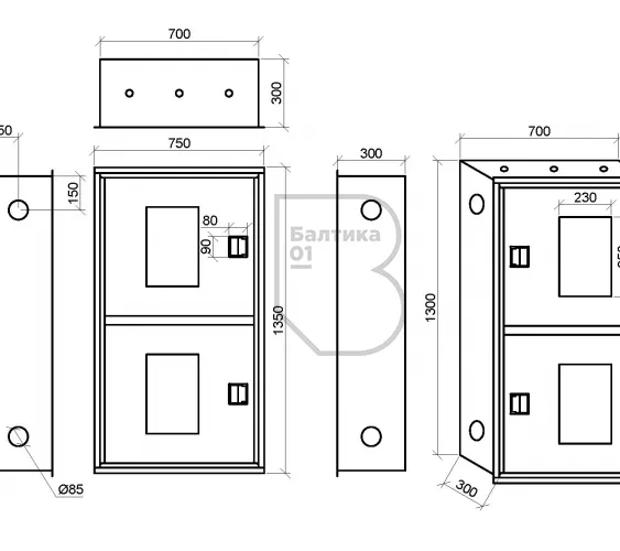 - Габаритные размеры (по корпусу), мм1300х700х300