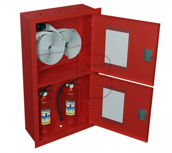 Шкаф пожарный ШПК-320-12 ВОК – предназначен для размещения и хранения двух рукавов пожарных в сборе, двух пожарных вентилей (клапанов) и двух огнетушителей до 10 кг. Шкаф оборудован двумя кассетами рукавными (в верхнем отсеке шкафа размещаются две кассеты).